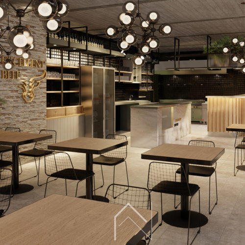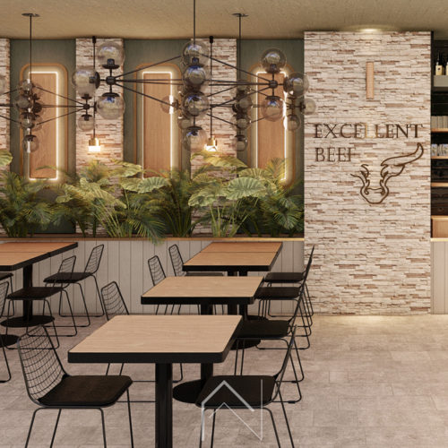 Restoranın konumu üniversite öğrencilerinin yoğun olarak yaşadığı bölgede ve şehrin hareketli caddelerinden birinin üzerinde yer almaktadır. Restoranda servis edilecek menüye uygun bir şekilde hamburger pişirme ve hazırlama bölümü ile kahve ve tatlı çeşitlerinin sunulduğu bölüm birbirinden ayrılmıştır. Restoranın yemek yeme bölümünde ise özel misafirler için ve öğrenciler için farklılaşan oturma düzenleri tasarlanmıştır. Tasarımda yeşil, bitkiler ve ahşap ile Excellent Beef ‘e ait olacak bir konsept oluşturulmuş ve konseptin kullanacak olan 18-25 yaş aralığına hitap etmesi amaçlanmıştır. Uygulama projeleri ve imalatların kontrolü büromuz tarafından yapılmıştır.
