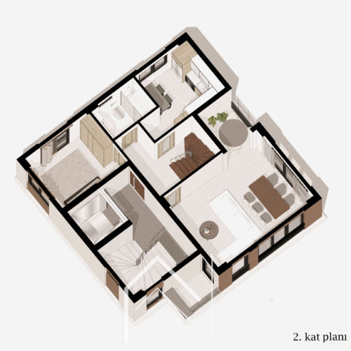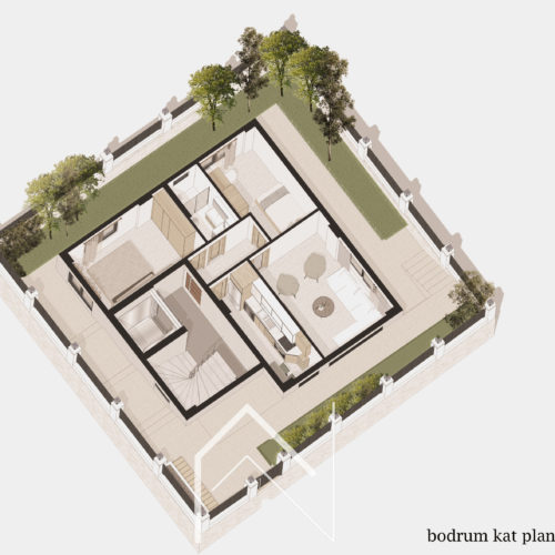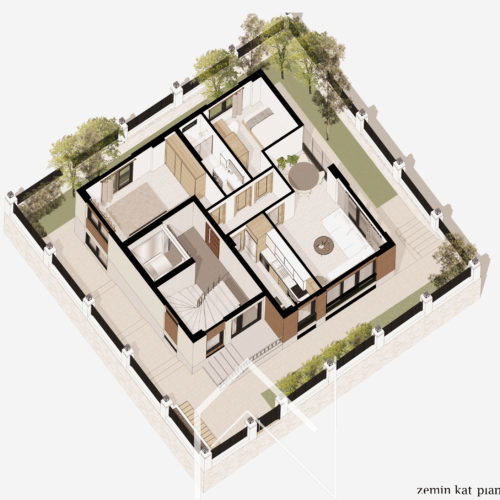 Kemerburgaz Ata Sokakta 4 bağımsız bölümden oluşan konut binası bir binada oturmayı tercih eden geniş bir aile için tasarlanmıştır. Bahçe, spor salonu ve dinlenme alanları ortak kullanıma uygun şekilde çözümlenmiştir. Cephe tasarımı kararlarında binanın bulunduğu yere uyumlu olması dikkate alınmıştır. Projelendirme ve ruhsat aşamaları ve uygulama sırasındaki kontrolü büromuz tarafından yapılmıştır.